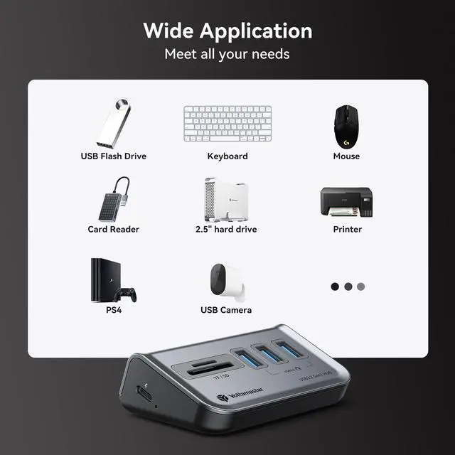 5Gbps USB 3.2 Gen1 ProtocolExperience lightning-fast data transfer speeds of up to 5Gbps with the USB 3.2 Gen1 transmission protocol. This usb hub with sd card reader features a reserved USB-C 5V power supply interface, allowing you to connect a 5V 2A power source to ensure sufficient power for high-power USB devices to function properly.