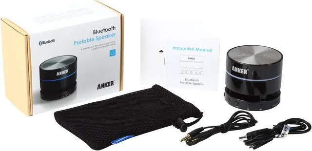| Features | The latest Bluetooth 4.0 (fully backward compatible) for longer standby time; equipped with a 3.5mm audio jack for non-Bluetooth devices. Rechargeable built-in lithium battery offers 8-10 hours of playtime; iOS devices display the remaining capacity in the top status bar. Stylish and compact round-drum body slips easily into your bag for use on the go. Features clear, full sound and a built-in microphone with CVC background noise reduction for receiving voice calls. Package contents: Anker Portable Bluetooth Speaker, 4ft 3.5mm audio cable, USB charging cable and user manual. |