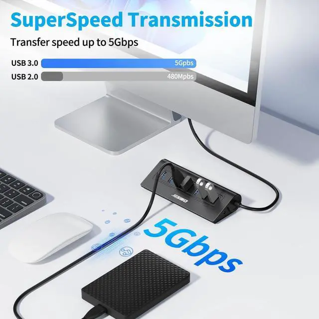 This USB 3.0 hub support data transfer speed up to 5Gbps,10x faster than USB 2.0, and each port provides a standard 900mA output.