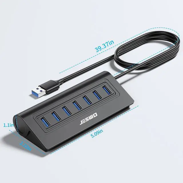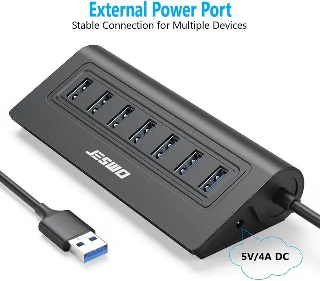 This JESWO 7-port USB 3.0 hub expands 7 data transfer ports and 1 5V/4A power port and is specially designed for data transmission.