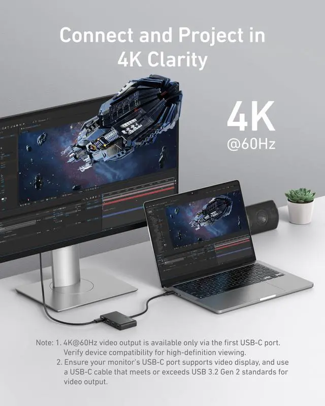 Unlock Full Potential: Enjoy crystal-clear 4K@60Hz video, rapid 100W PD-IN charging, and ultra-fast 10Gbps data transfer speeds, all housed in an exterior casing crafted from 75% post-consumer recycled materials.