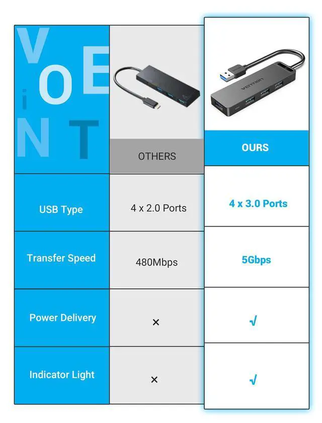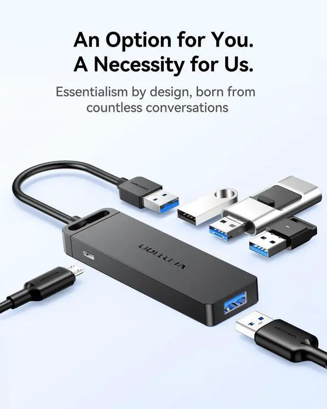 The reinforced design at the cable junction can prevent breakage due to frequent bending, effectively extending the lifespan of the USB hub. It easily passed VENTION laboratory's 10,000+ bending test.