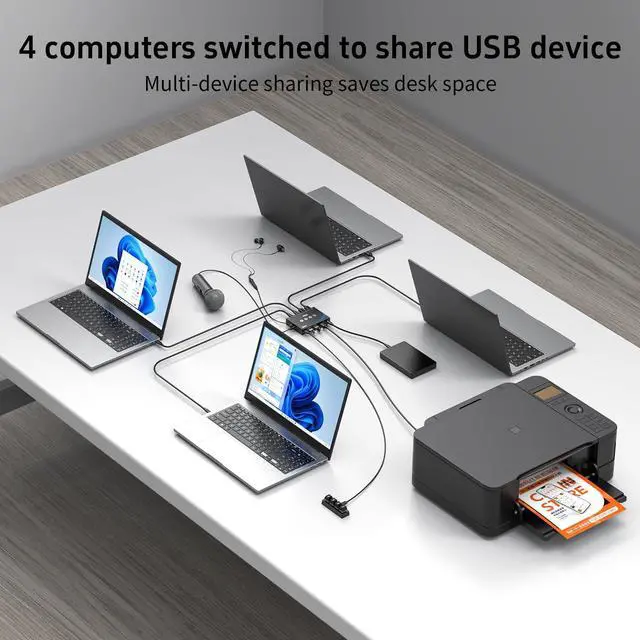 2 USB A + 2 USB C InputsThis USB 3.2 switcher allows you to connect up to 4 computers (2 USB A 3.2 + 2 USB C 3.2) and share external devices with ease. No more plugging and unplugging cables every time you switch computersjust one device to manage all connections, saving time and extending the life of your ports.