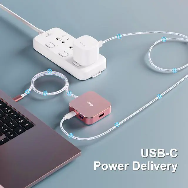With USB-C female power pass through port, charge your laptop while USB-C charging port is occupied,
