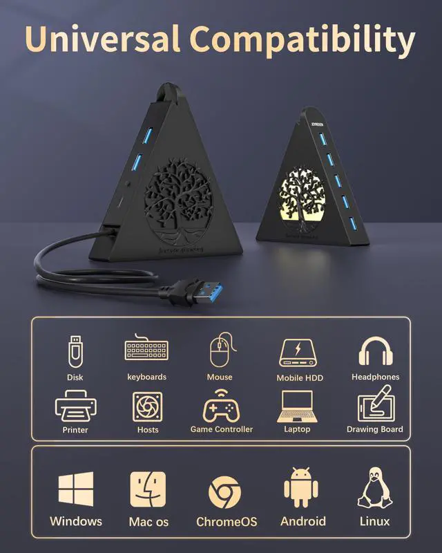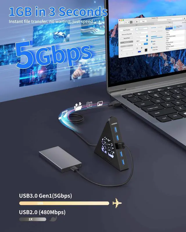 Some USB hub cables are so incredibly short they almost defeat the purpose of convenience. With two full feet of cable, you can adjust the length to perfectly suit your laptop or desktop workstation.