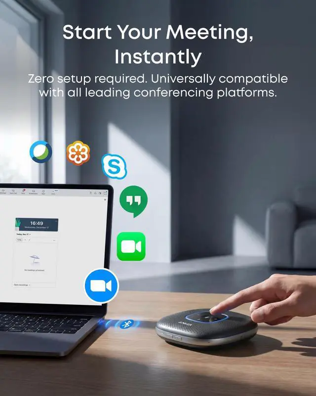 PowerConf Bluetooth speakerphone delivers loud, clear voice broadcasting to make conference calling effortlessly easy to hear.