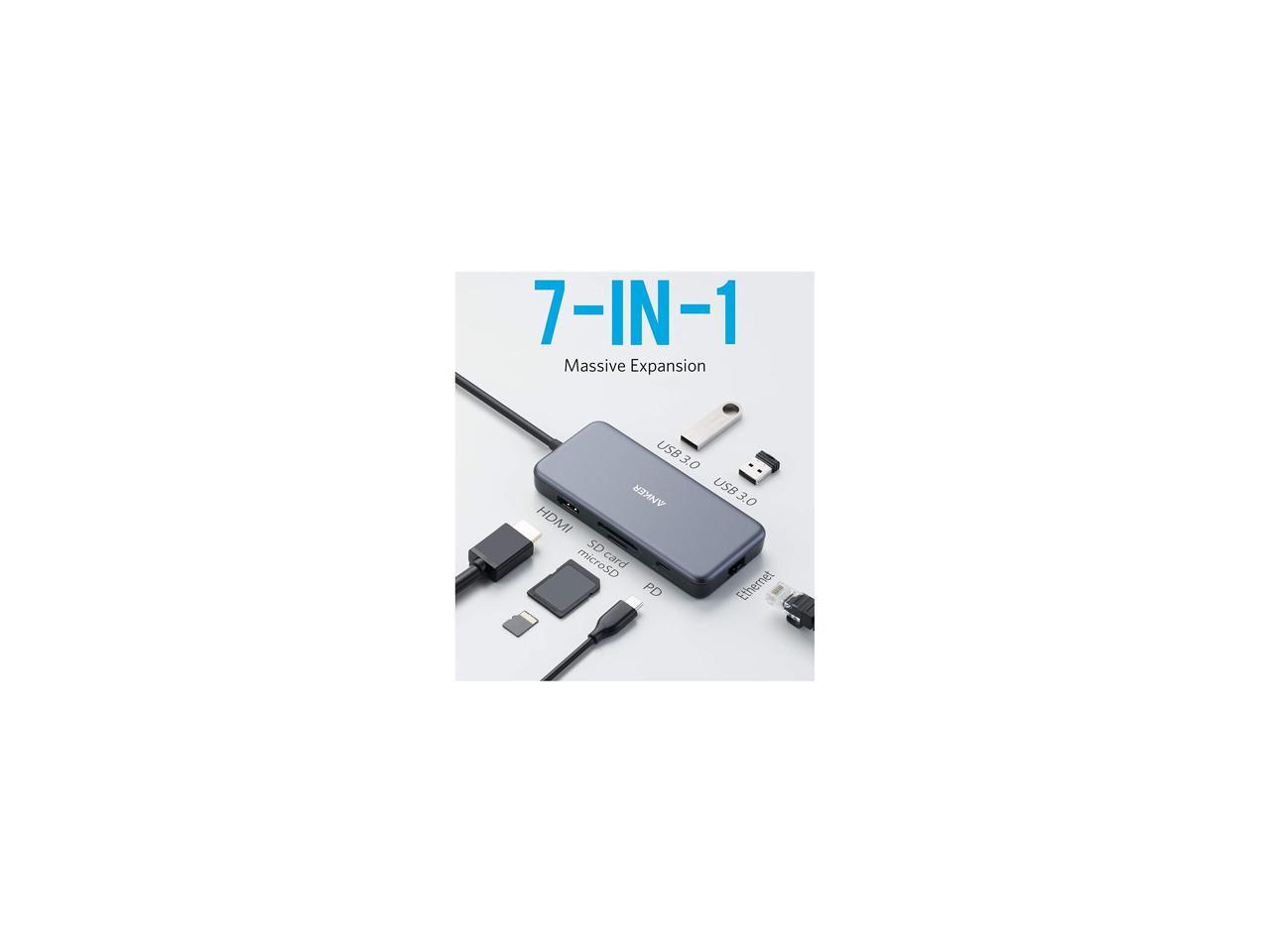 Anker USB C Hub Adapter, PowerExpand+ 7-in-1 USB C Adapter, with 4K USB C to HDMI, 60W Power Delivery, 1Gbps Ethernet, 2 USB 3.0 Ports, SD and microSD Card Readers, for MacBook Pro, XPS, Pixelbook