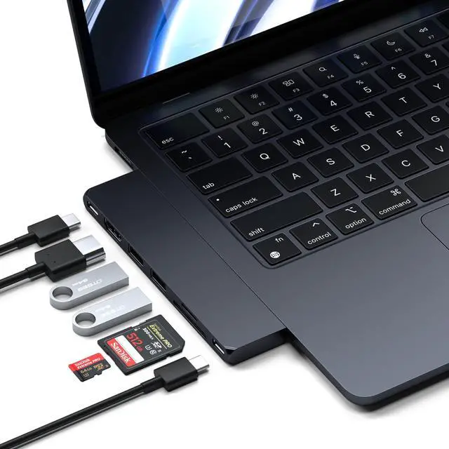 The USB-C port to the left of the HDMI port can charge the host device up to 100W, transfer data up to 40Gbps, and support display up to 6k@60Hz. The USB-C port to the right of the SD card readers is a 10Gbps data port that doesn't support charging.