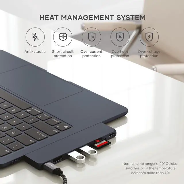 Our USB4 Hub comes with FCC and UKCA, CE, and ROHS certifications which makes it safe to use. It has a built-in safety mechanism that would disconnect the device if it is not providing enough power or if the power requirements are too high.