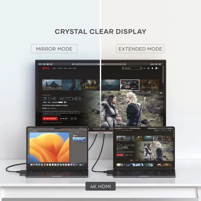 Yes, the HDMI port to the right of the USB-C port supports display resolution up to 4k@60Hz extended and mirrored.