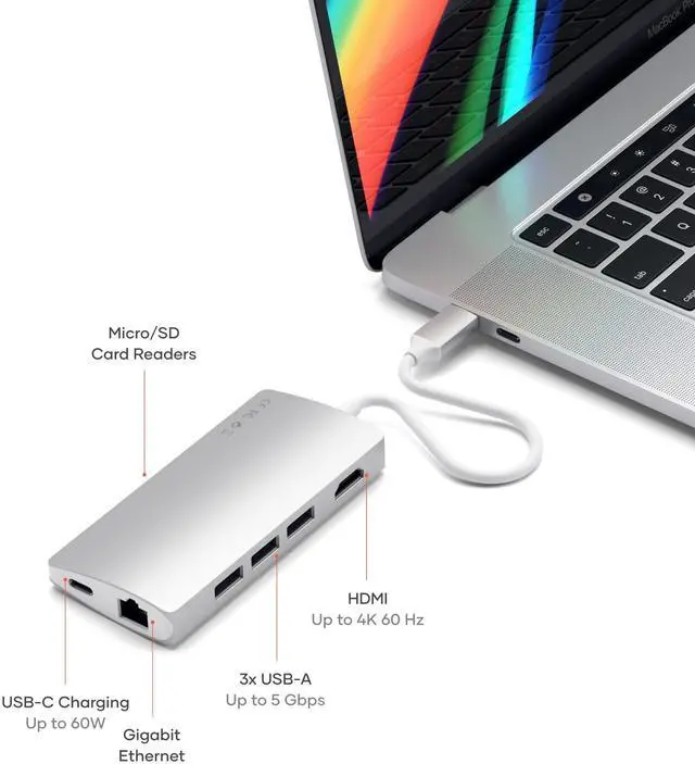 8 in 1 USB C Hub Multiport Adapter V2, 4K HDMI, 115W USB C PD Charging, 3 USB-A, Ethernet, Micro/SD Card Readers, for Laptop, MacBook Air/Pro M5/M4, iPad, Windows - Silver