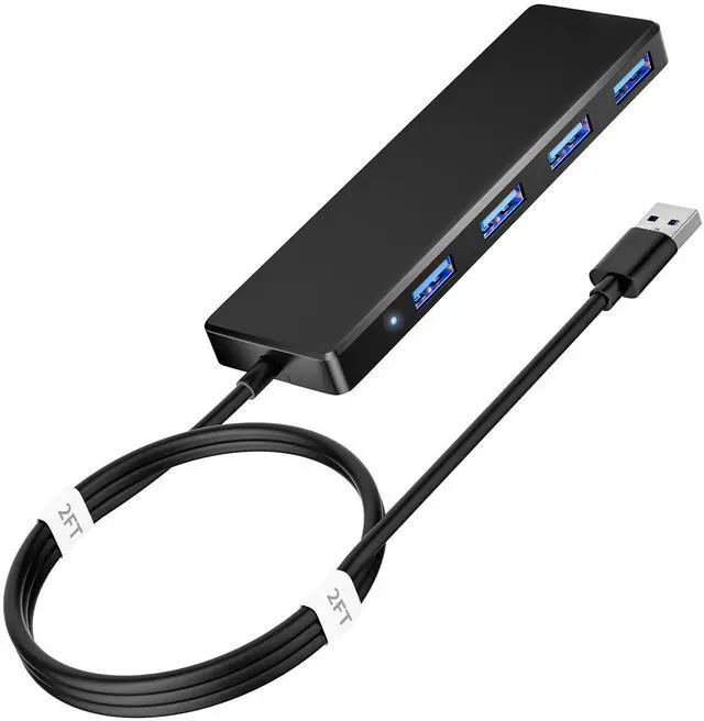 Ultra Slim 4-Port USB 3.0 Data Hub, Widely used in mouse, keyboard, U disk, card reader, hard disk, printer, desktop fan and other devices with USB interface. Perfectly resolve the issue of insufficient USB ports on your laptop.