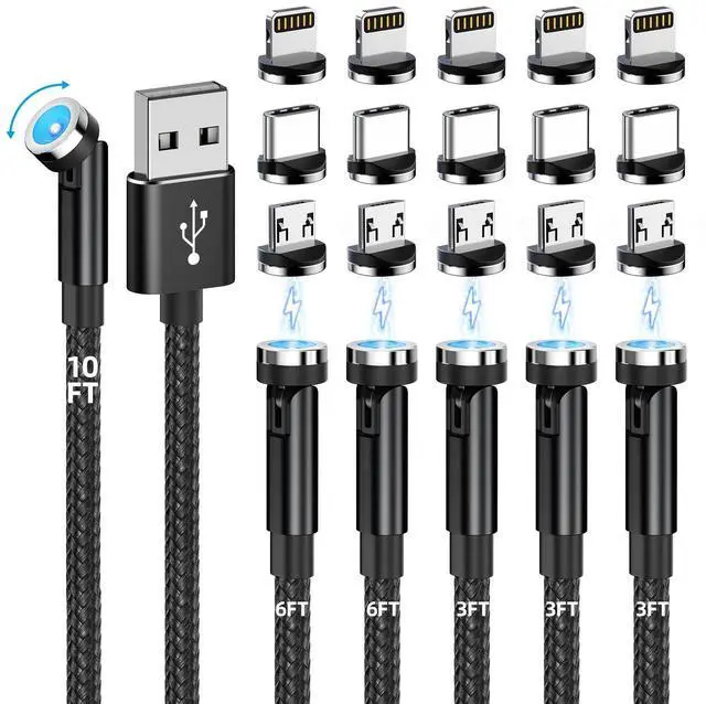 ![Alt view image 4 of 7 - Magnetic Charging Cable, 540° Rotating Magnetic Phone Charger [6-Pack, 3ft/3ft/3ft/6ft/6ft/10ft] 3 in 1 Magnetic Charger Cable Nylon Braided Magnetic USB Cable for iProduct/Micro USB/Type C Device](https://c1.neweggimages.com/productimage/nb640/C2JJD2602270Y0R7T62.jpg)