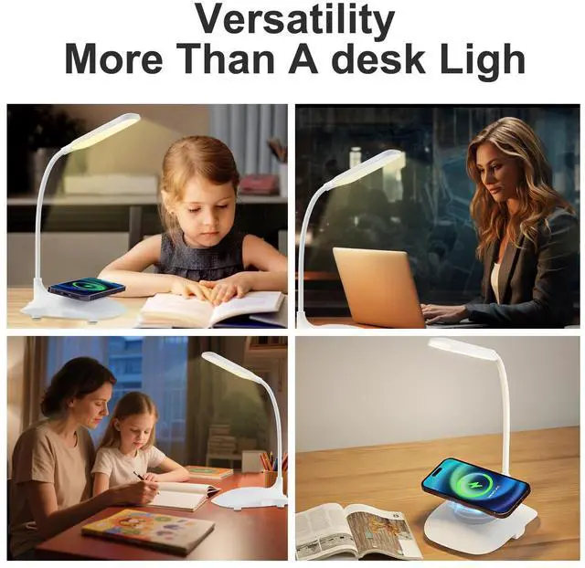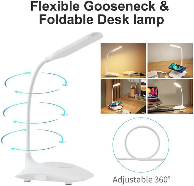 LED Desk Lamp Wireless Charging Desk Lamp with Touch Control Dimmable Office Desk Light Eye-caring Office Lamp with Adjustable Gooseneck Table Lamp, Reading Lamp Table Lamp for Bedroom Bedside Study
