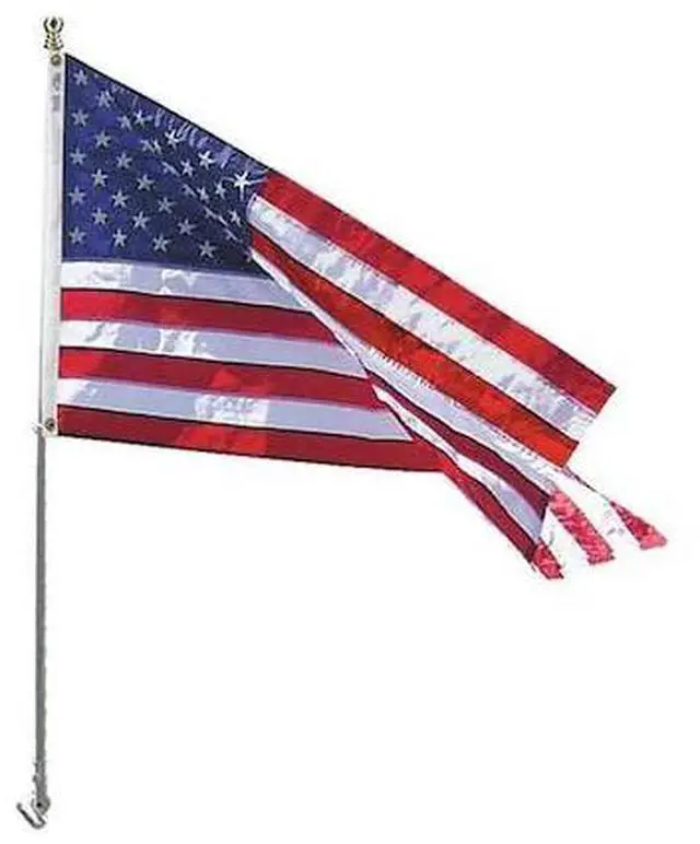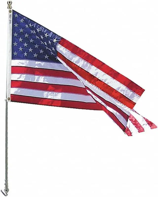 US Flag Set, United States, Indoor, Outdoor, Style Sewn and Embroidered, Height 3 ft, Width 5 ft, Material Nylon, Includes (2) 6 ft White Spinning Pole with Gold Ball. This item has been restricted from sale in the following state (s): []
