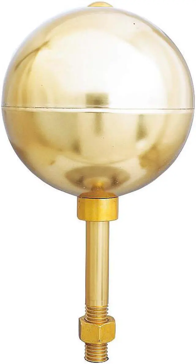 Ball Ornament, Ball Dia. 6 In., Material Aluminum, Color Gold, Finish Gold Anodized, For Use With Flag Poles with 1/2 In Mounting Hole, Includes Mounted on 1/2 In Heavy Threaded Aluminum Spindle. This item has been restricted from sale in the following state (s): []