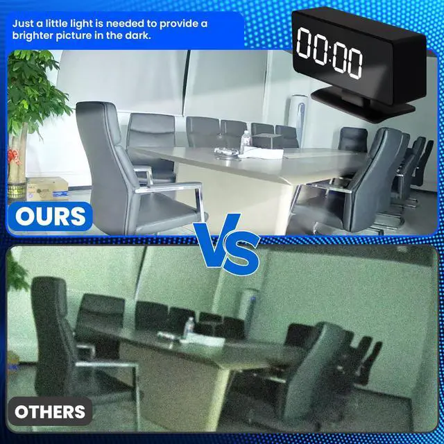 Advanced color night vision function: Our secret security camera is equipped with cutting-edge night vision technology. As long as there is a little bit of low light, our camera can capture color night vision effects, not just black and white effects, but can achieve the same effect as daytime