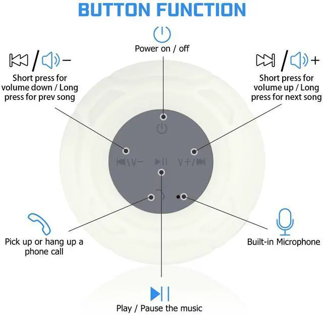 Waterproof shower speaker protects against water spray and splash away,So you can enjoy the music to the fullest in the shower.