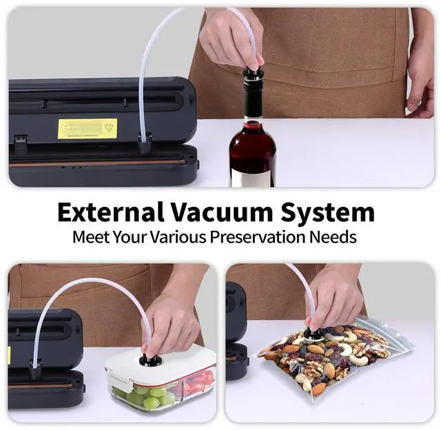 6-in-1 Smart Modes for Any NeedSwitch between Moist and Dry modes to perfectly preserve everything from juicy meats to crunchy snacks. Use the External VAC hose for jars, canisters, or even wine bottles. Plus, enjoy built-in bag cutter, quick Seal-only mode, and Stop function for full control anytime.