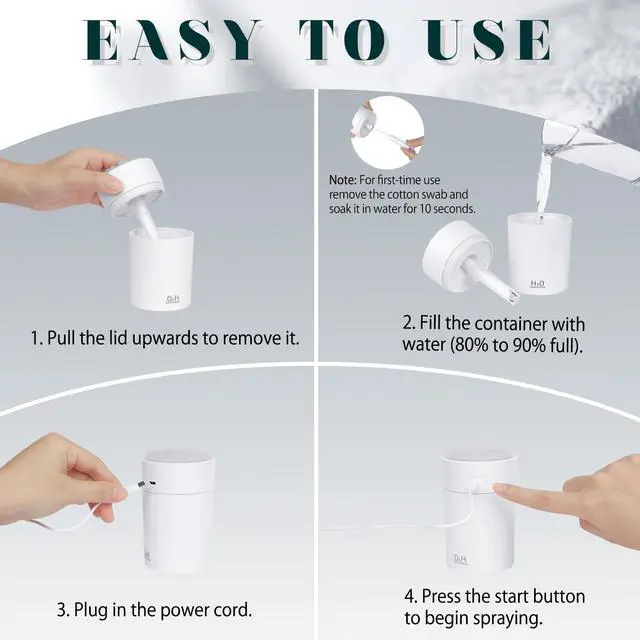 Note: For first-time use, remove the cotton swab and soak it in water for 10 seconds.