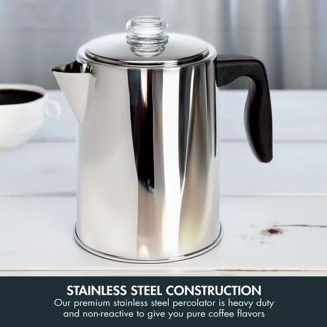 Works on electric, ceramic and gas stovetops including propane, making it the perfect camping coffee pot. Perfect for everyday use and for large gatherings.