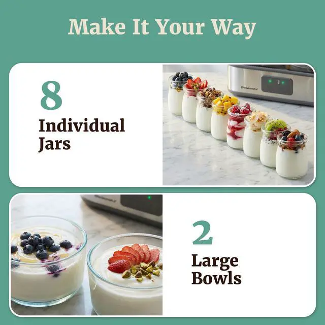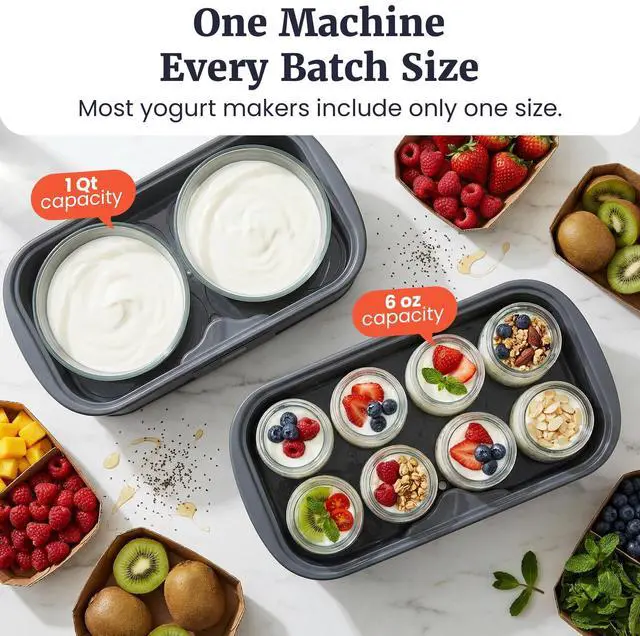 ONE MACHINE, EVERY BATCH SIZE: Includes 8 individual 6-oz glass jars AND 2 large 1-quart glass bowls, giving you the flexibility to make single servings, flavor variety, or family-size batchesno choosing between formats.