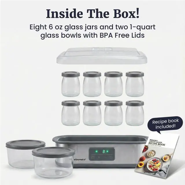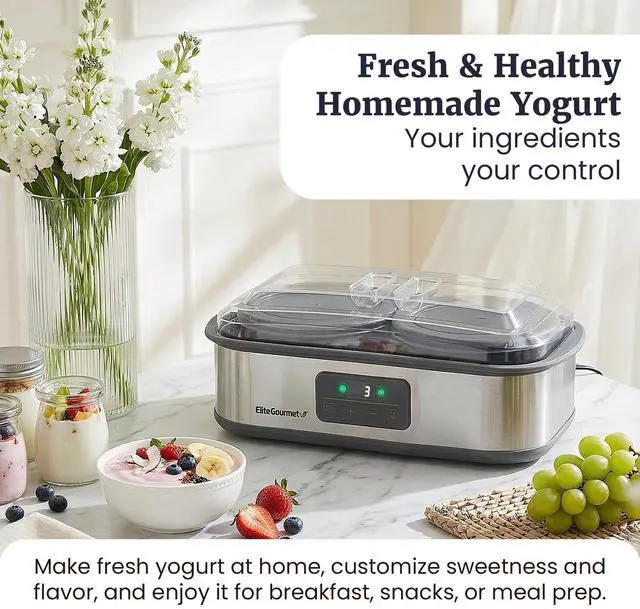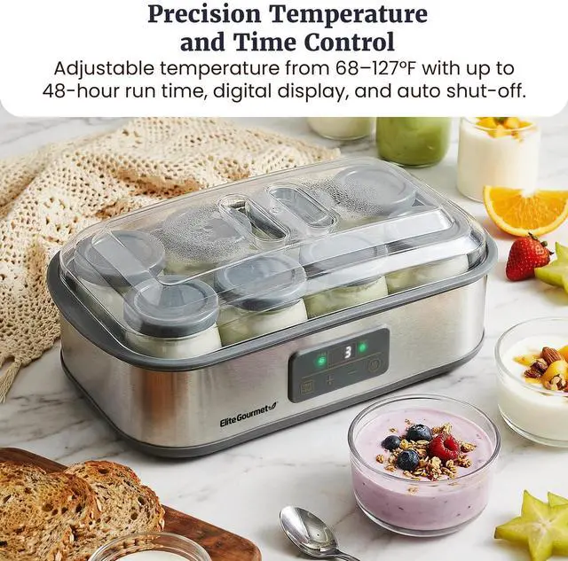 PRECISION TIME & TEMPERATURE CONTROL: Programmable digital controls allow adjustable temperatures from 68127°F and run times up to 48 hours, creating consistent conditions for customized yogurt texture, tang, and thickness.