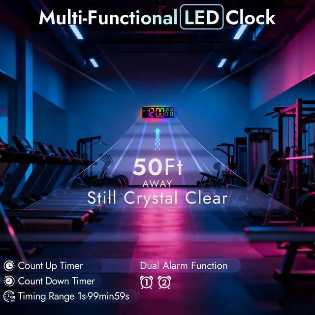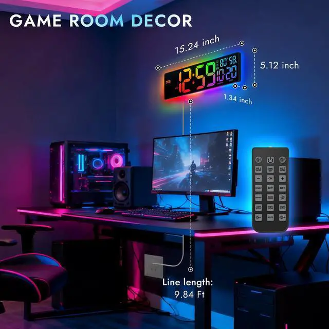 16.5" Big LED Display: Level up your gaming room or man cave with 7 solid colors and 6 dynamic RGB night light effects. The clock screen showcases 7 solid colors and 4 RGB modes. The independent dual-zone lighting (face & backlight) syncs the screen display with the night light color