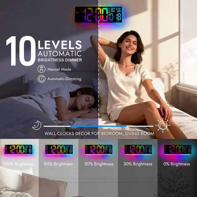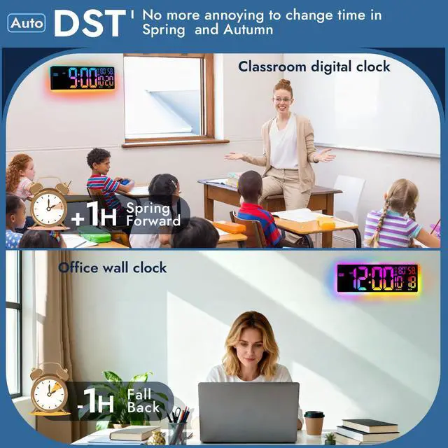 Auto-DST & Auto-Dimming: Set it once and forget itthe clock automatically adjusts for spring and fall time changes. Monitor indoor temperature, humidity, date, and day at a glance. A high-value gift for housewarming, birthdays, or back-to-school prep