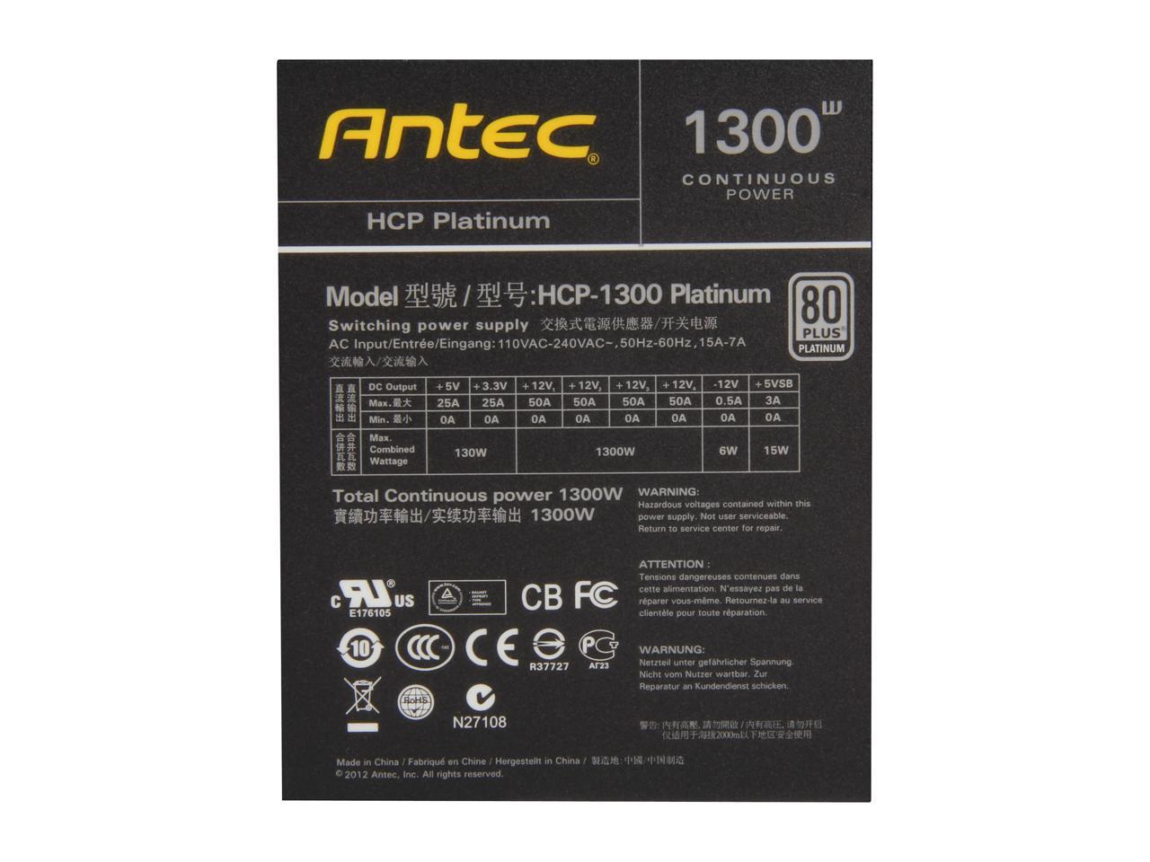 Antec HCP-1300 Platinum 1300W ATX12V / EPS12V SLI CrossFire 80 PLUS PLATINUM Certified Full Modular Active PFC Power Supply - Intel Haswell Fully Compatible