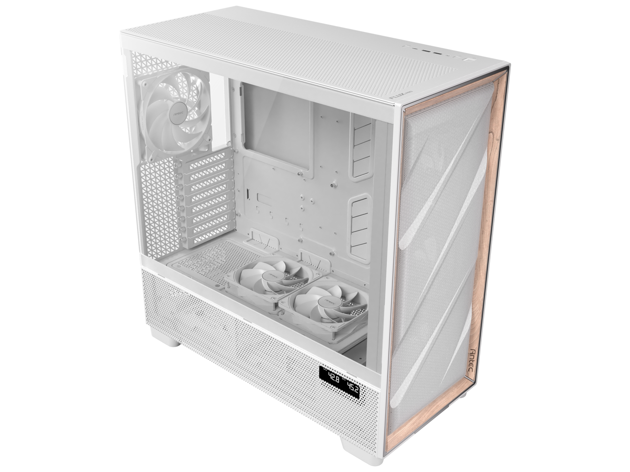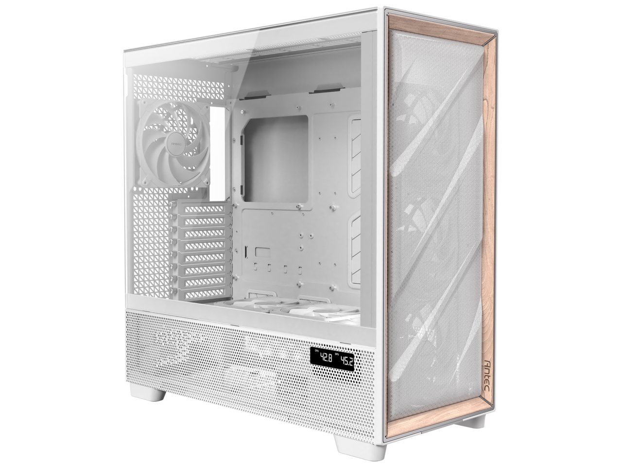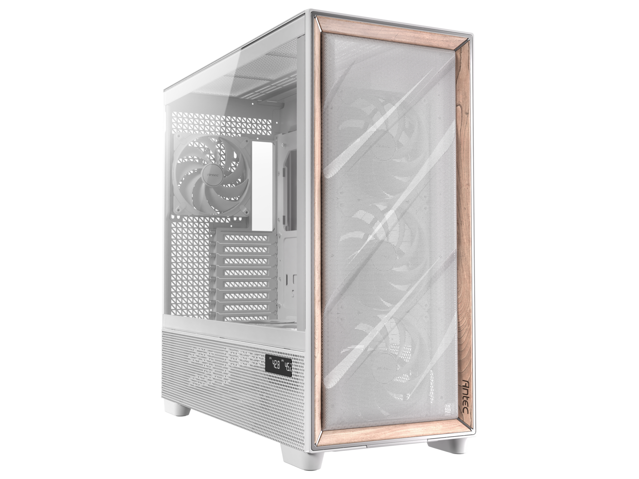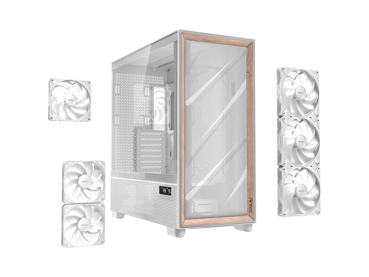 Antec Flux Pro White, 6 x PWM Fans Included, High-Airflow Front Panel with Birch Wood, iShift PSU 90° Mount, USB3.0 x 2, Type-C, 420mm Radiator Support, Temp. Display, Full-Tower E-ATX PC Case