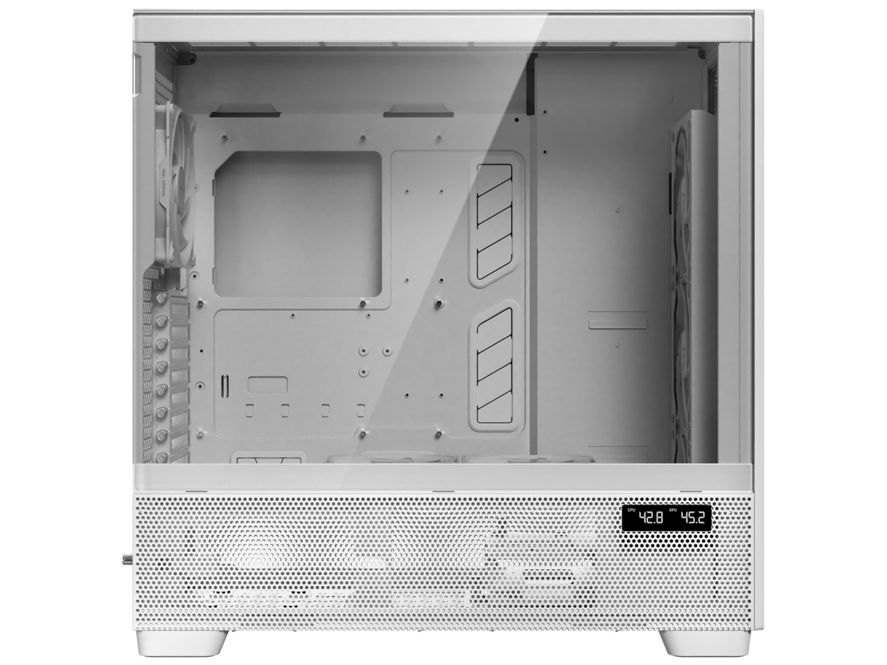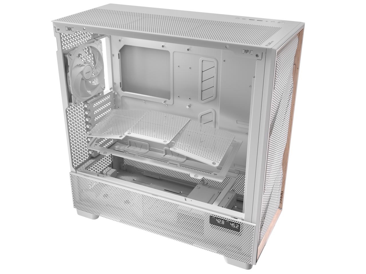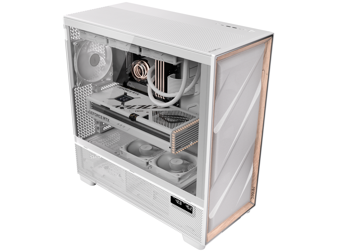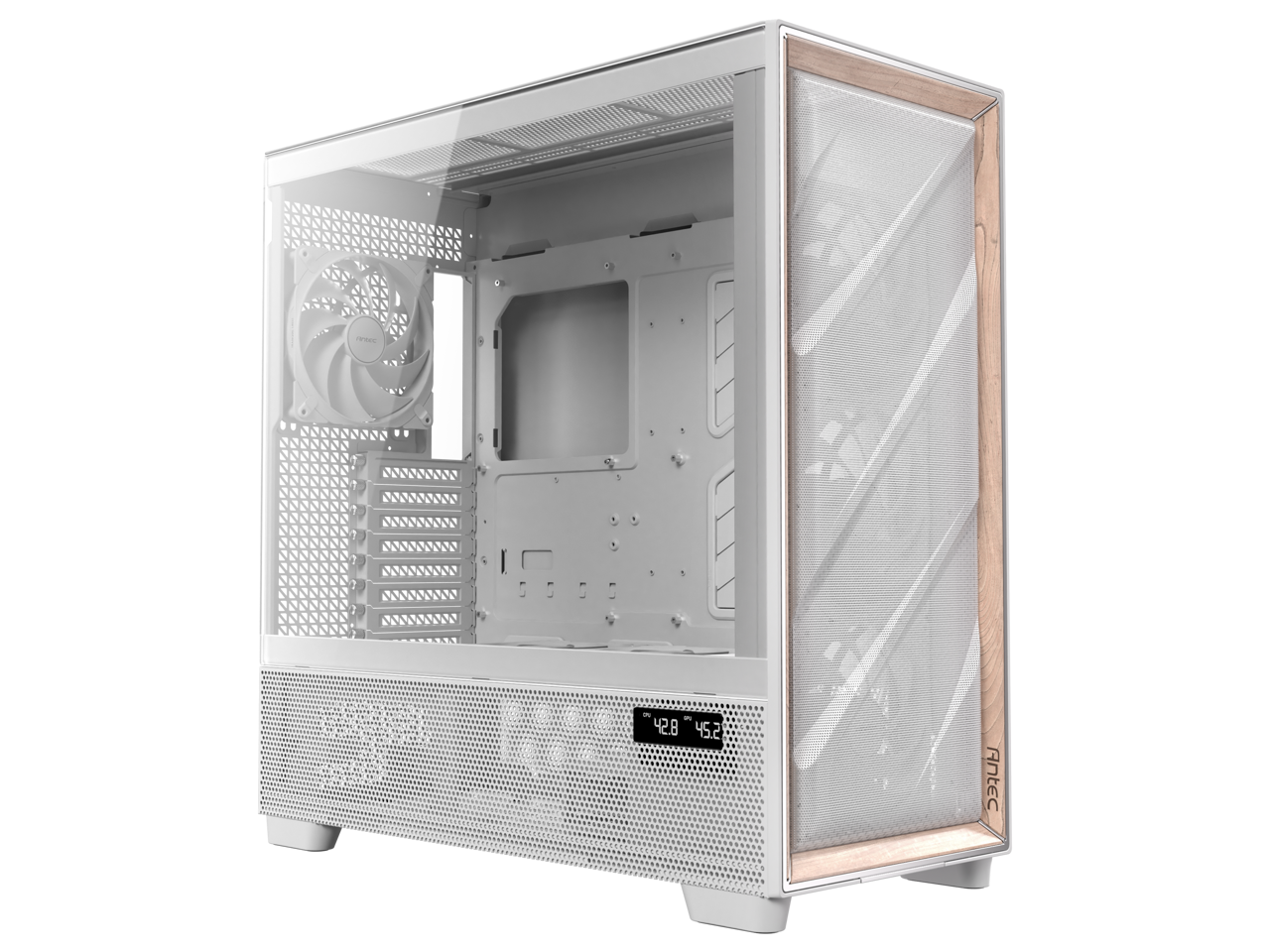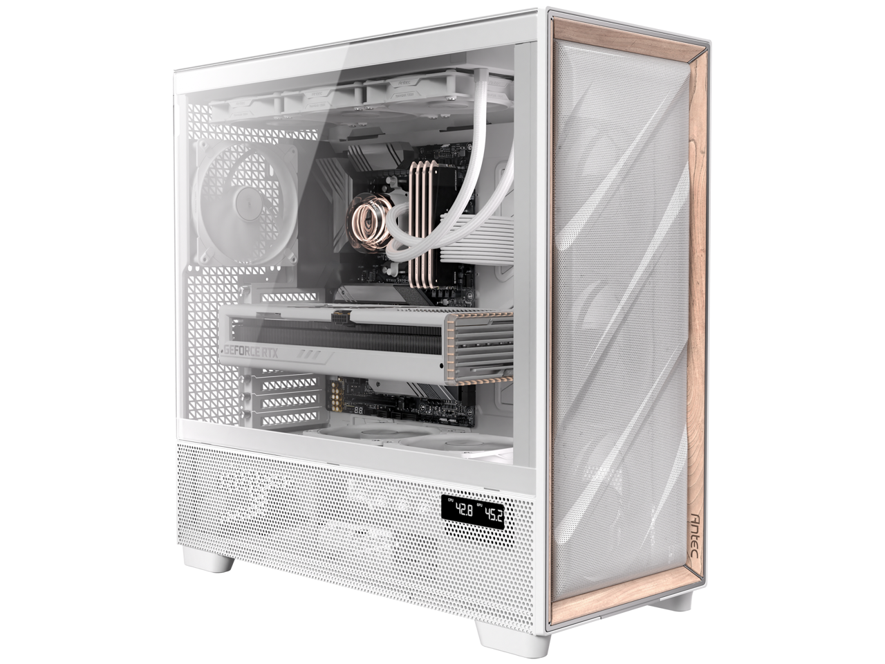 Antec Flux Pro White, 6 x PWM Fans Included, High-Airflow Front Panel with Birch Wood, iShift PSU 90° Mount, USB3.0 x 2, Type-C, 420mm Radiator Support, Temp. Display, Full-Tower E-ATX PC Case