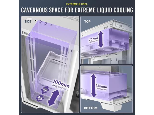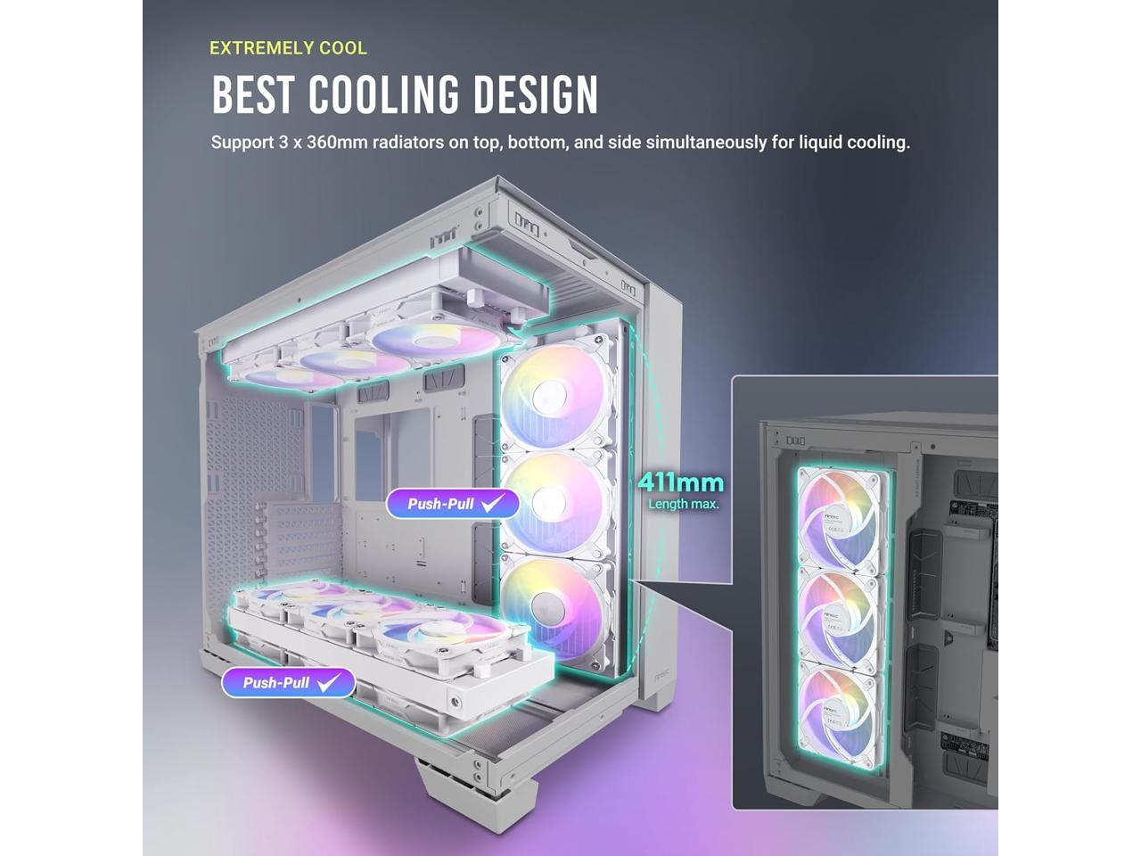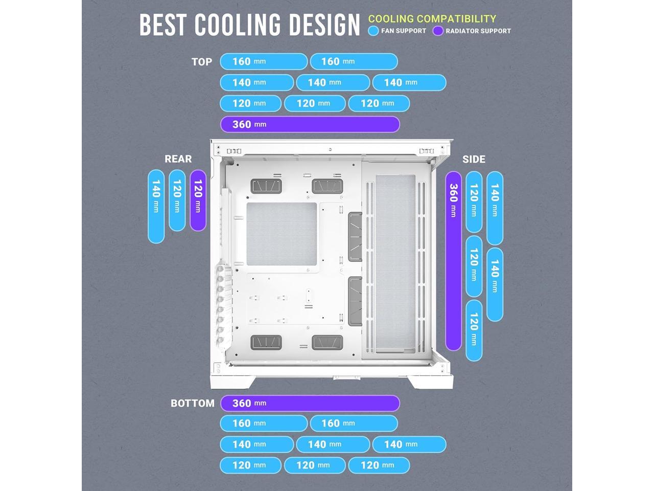 - Supports Thick 360mm Radiators on Top, Bottom, and Side Simultaneously.