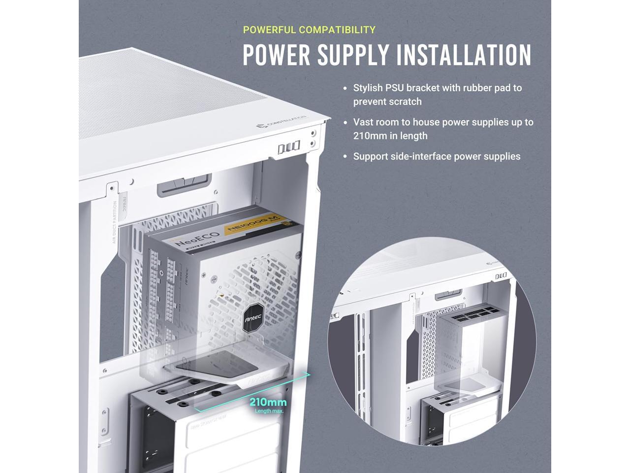 Antec C8 White, Fans not Included, RTX 40 Compatible, Dual-Chamber, tooless Design, Type-C, 360mm Radiator Support, Seamless Tempered Glass Front & Side Panels, High Airflow Full-Tower E-ATX PC Case
