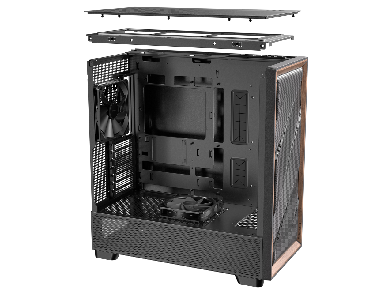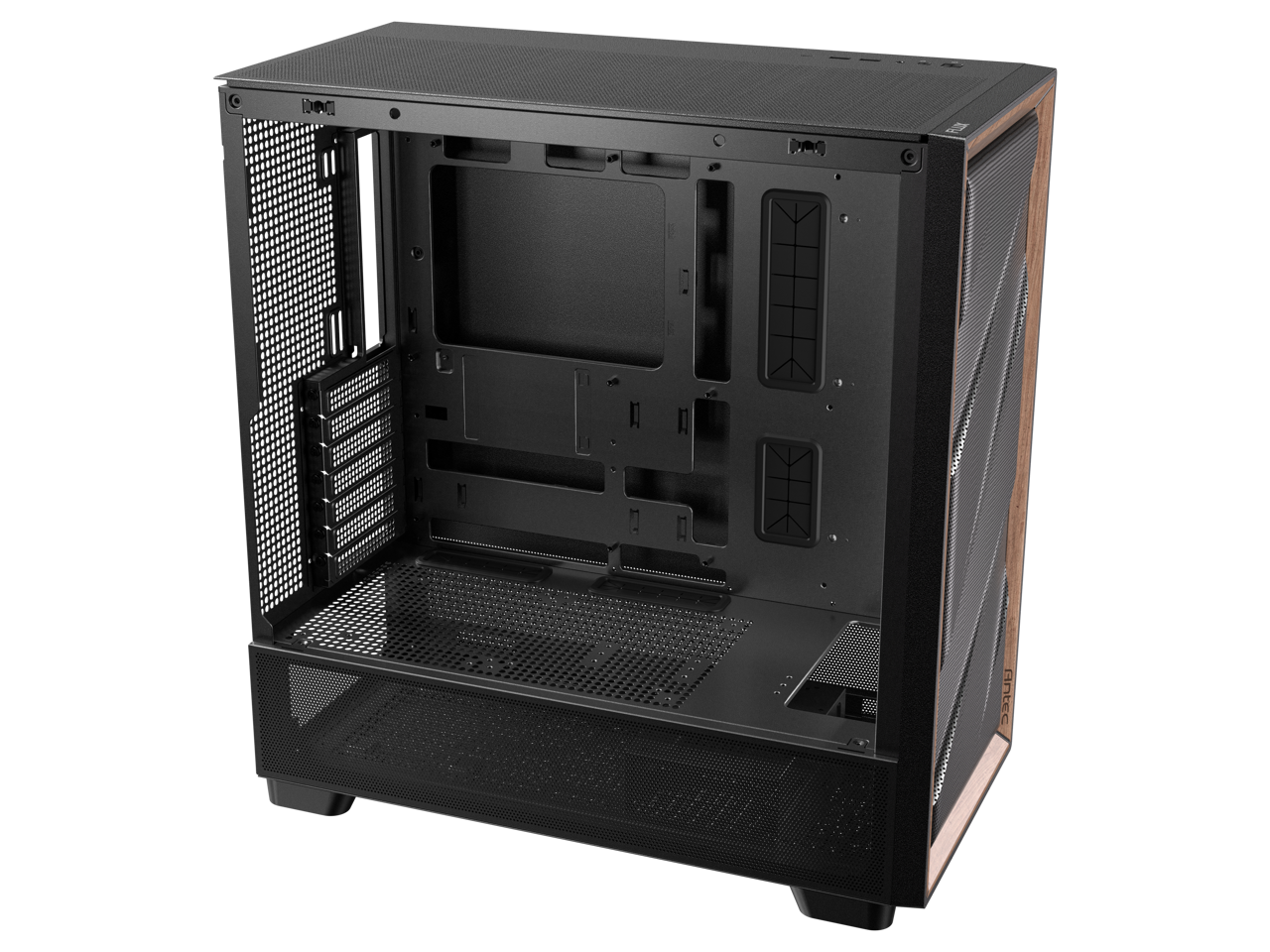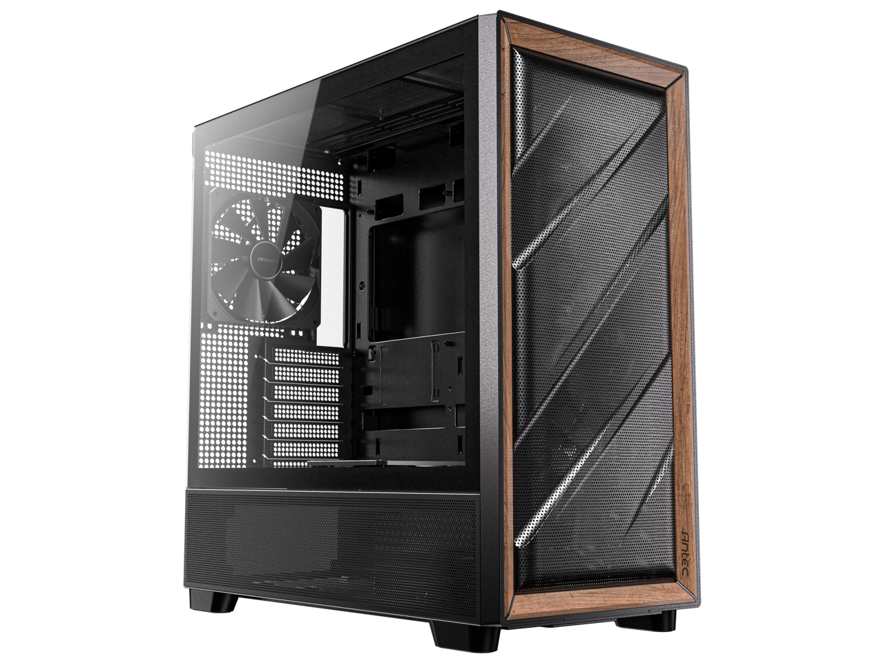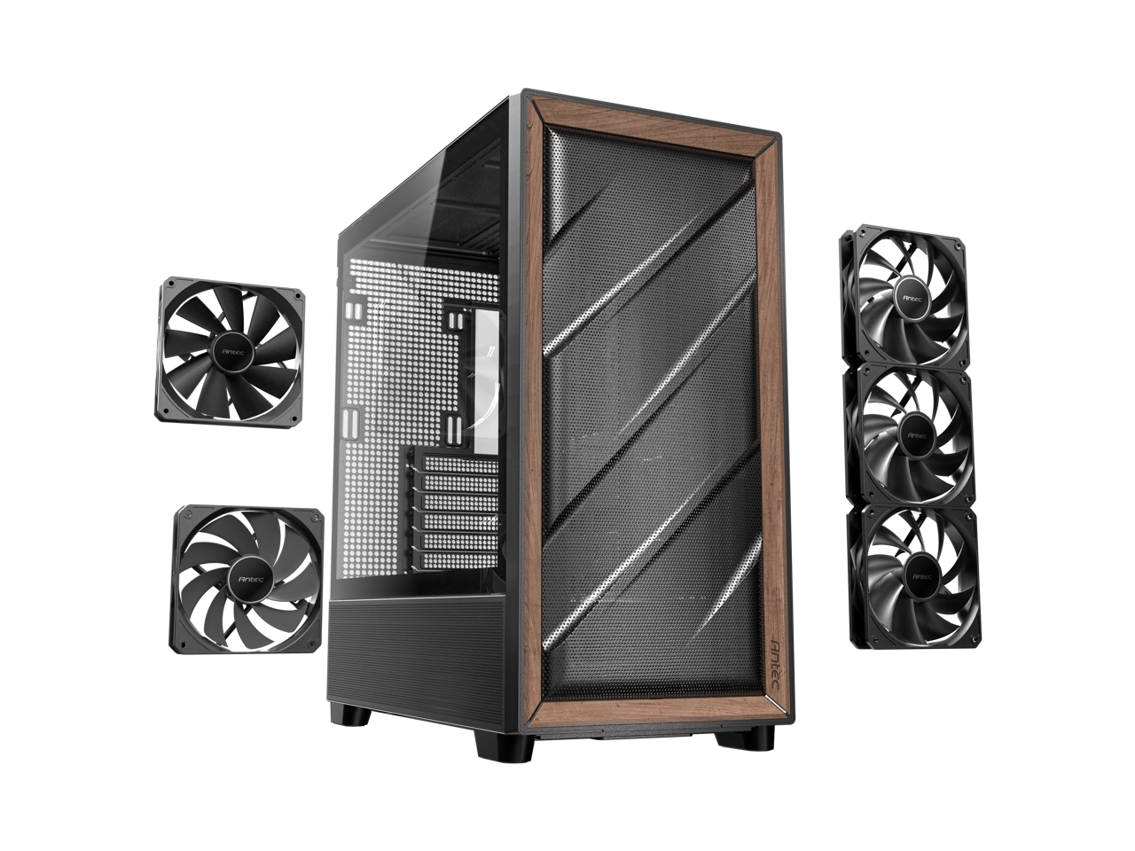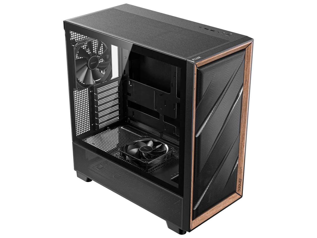 Antec FLUX Wood, 5 x PWM Fans Included, High-Airflow Front Panel With Walnut Wood, Type-C, 420mm Radiator & Back Connect Motherboard Support, Up to 9 Fans Simultaneously, Mid-Tower E-ATX PC Case