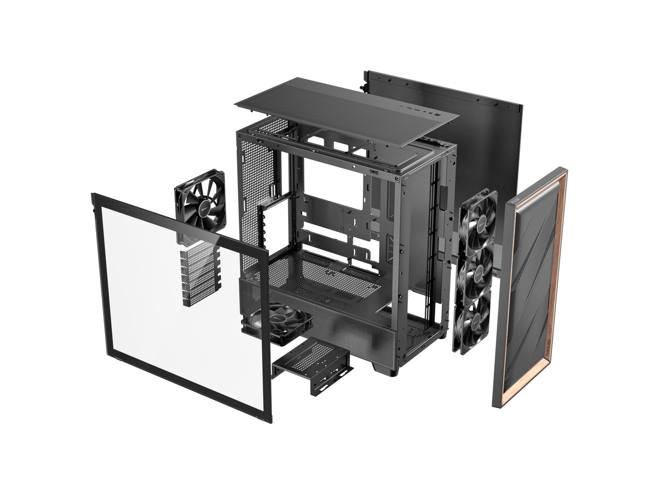 Supports up to 9 fans simultaneously, with pre-installed 3 x P12 PWM at the front & 1 x P12R PWM reverse fan at the power supply chamber & 1 x P14 PWM in the rear.