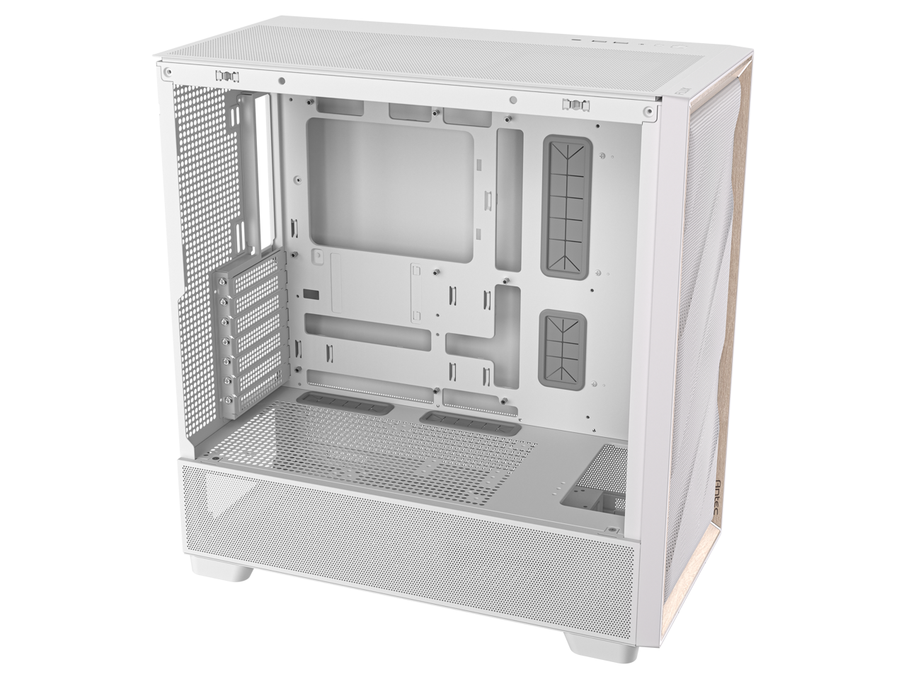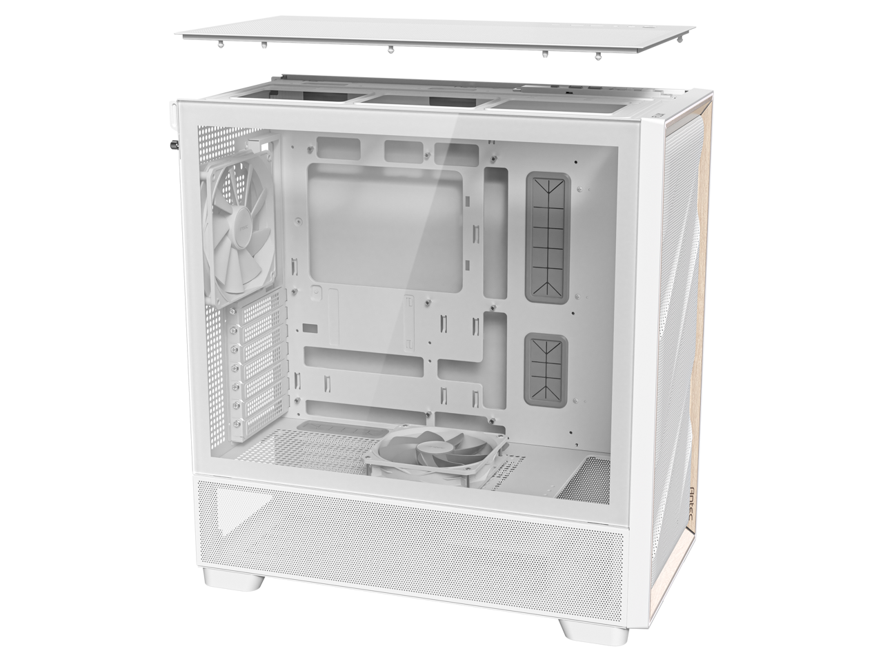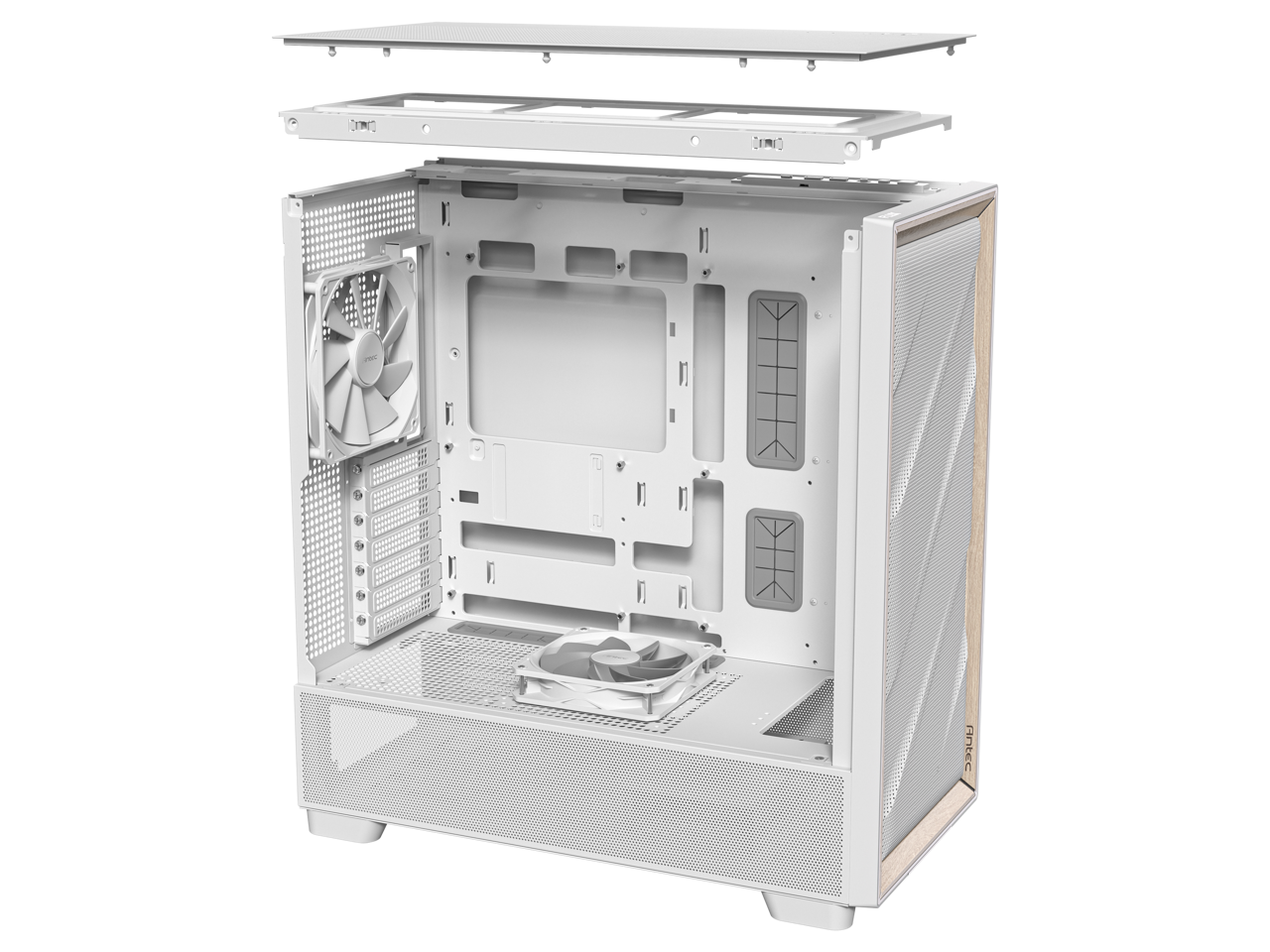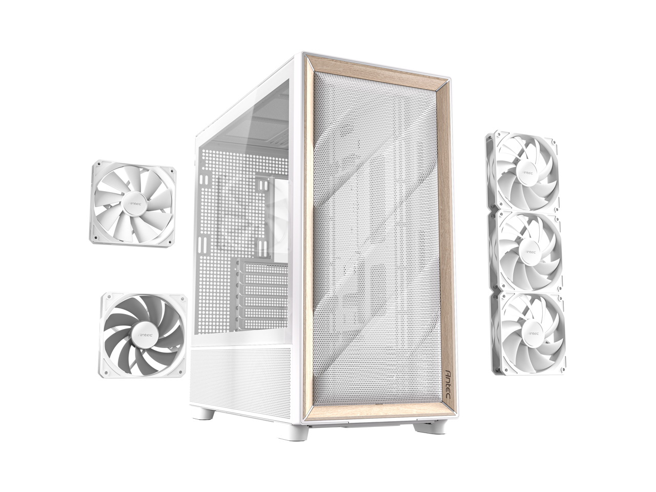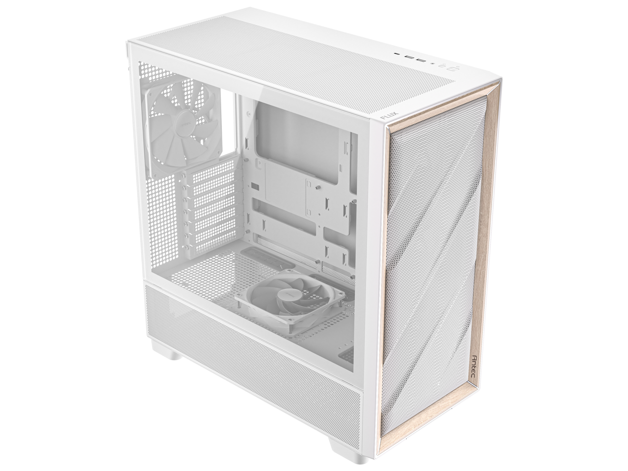 Antec FLUX Wood White, 5 x PWM Fans Included, High-Airflow Front Panel With Birch Wood, Type-C, 420mm Radiator & Back Connect Motherboard Support, Up to 9 Fans Simultaneously, Mid-Tower E-ATX PC Case