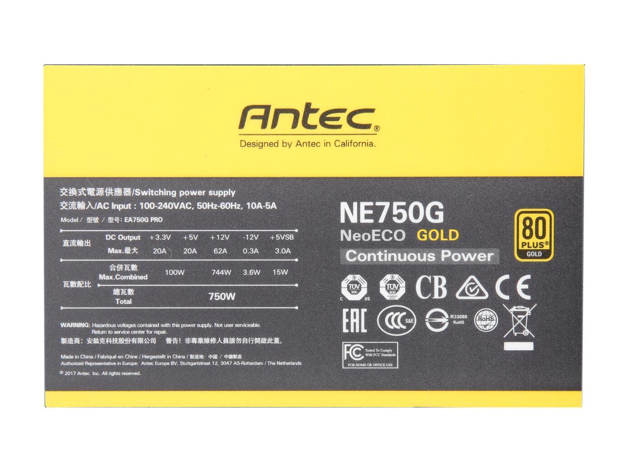 Antec NeoECO Series NE750G 750W ATX 12V / EPS 12V 80 PLUS GOLD Certified Semi-Modular Compact 140 mm Size 7 Year Warranty Power Supply