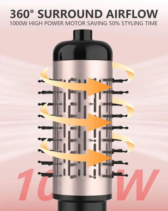 4-in-1 Hair Dryer Brush: Consolidate your styling tools with our 4-in-1 rotating hair dryer brush spinning, merging the functions of a hair dryer, brush, iron and s. Swap between brush heads for versatile styling, achieving professional results at home