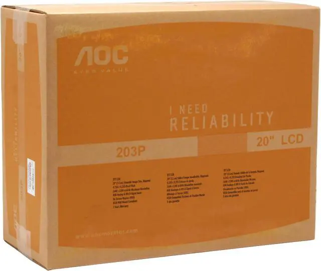 | Package Contents | 203P LCD Monitor VGA Cable DVI Cable Power Cable User Manual |