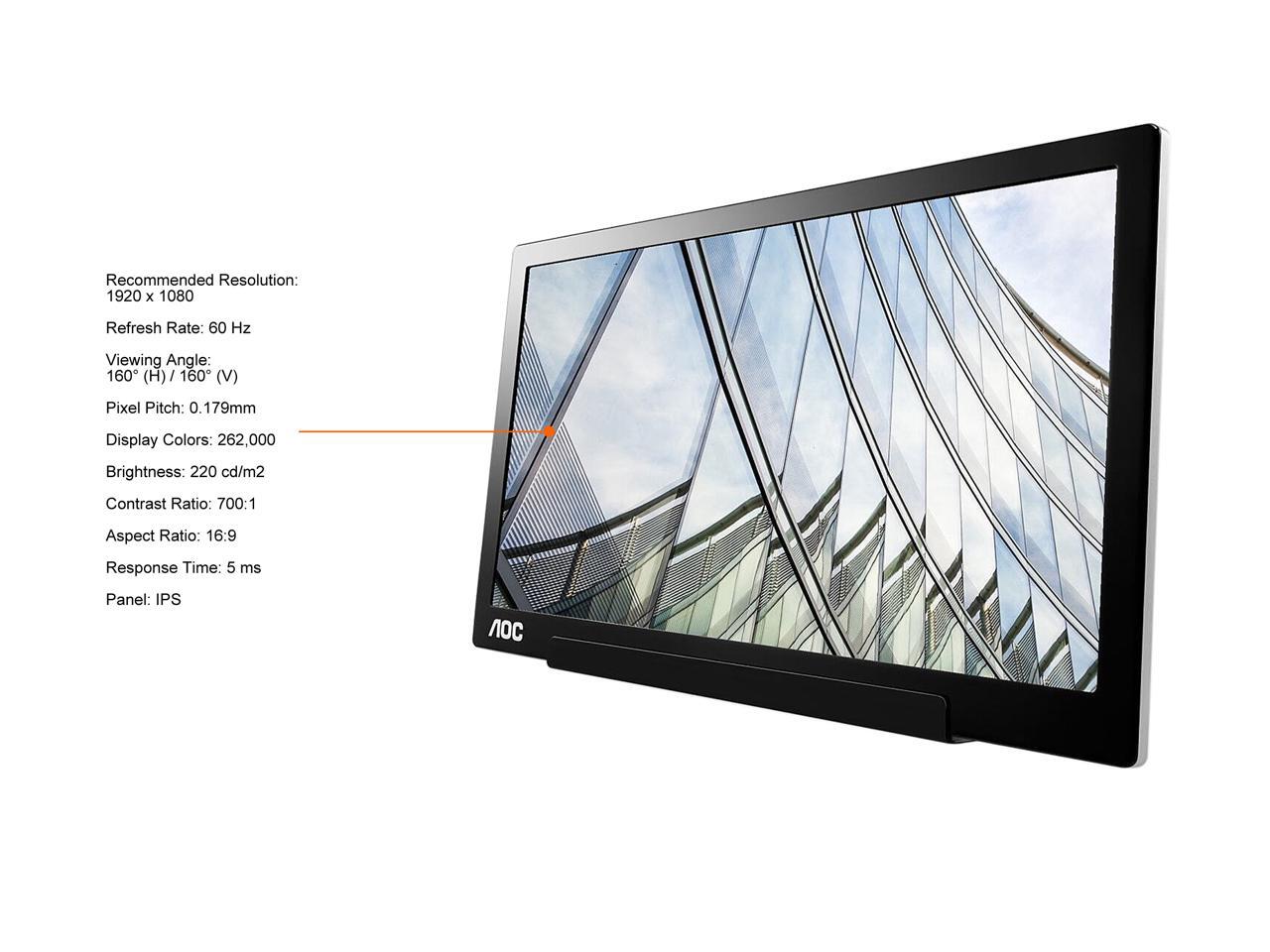 AOC 15.6" I1601C 1920 x 1080 FHD IPS USB-C Tilt Pivot WLED Backlight Portable Monitor