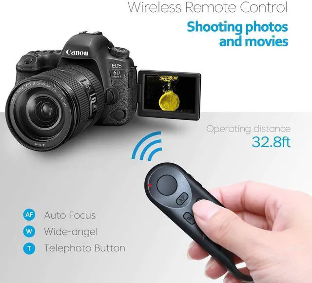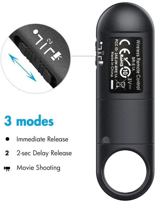 This wireless remote control operating range up to 10m/32.8ft, you can shutter release in any direction,you dont have to aim the remote at the camera.