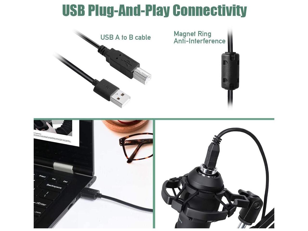 - Ensure the best sound available at an amazing cost performance The USB Microphone Kit is equipped with condenser mic, adjustable microphone stand, shock mount.