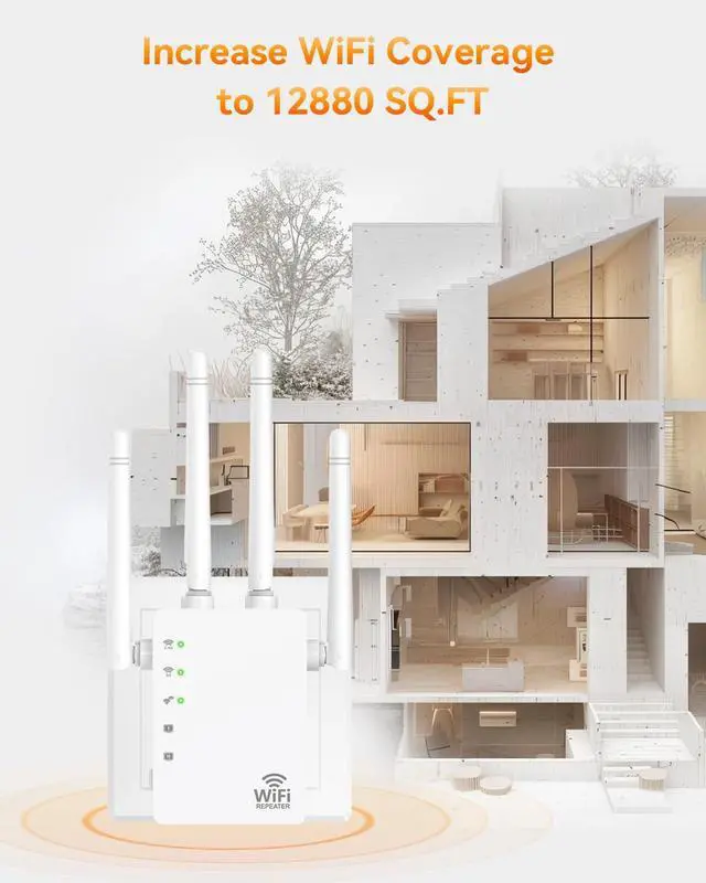 WiFi Extender with 1200Mbps Dual - Band 2.4G&5G, WiFi Booster Covers Up to 12880 Sq.ft & 105 Devices, WiFi Repeater with 1 - Tap Setup and 4 Antennas, Booster Works with All Routers