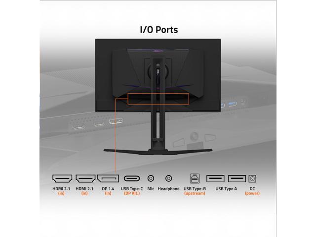 - Connectivity: 2x HDMI 2.1, 1x Displayport 2.1 (UHBR 20), 1x mini DP 2.1 (UHBR 20), 1x USB Type-C, 2x USB 3.2 Downstream ports, 1x USB 3.2 Upstream port, 1x Earphone Jack, 1x Microphone Jack