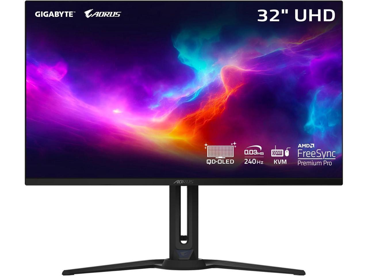 AORUS FO32U2 Pro 32" QD OLED 4K UHD 3840 x 2160 240Hz 0.03ms GTG AMD FreeSync Premium Pro, USB-C, KVM, HDMI 2.1, Display Port 2.1, Height Adjustable Gaming Monitor