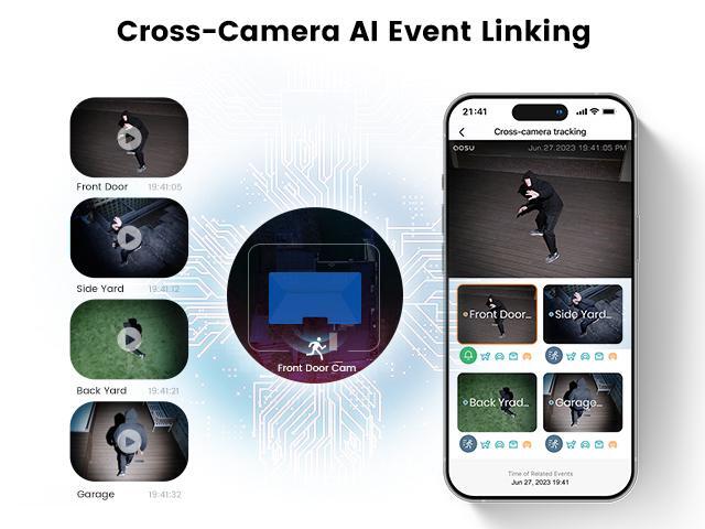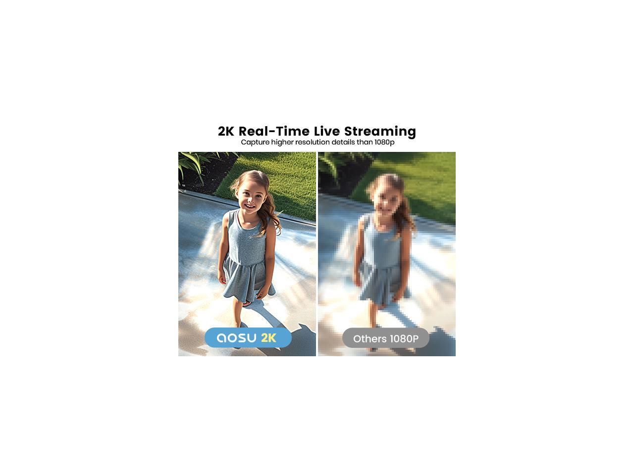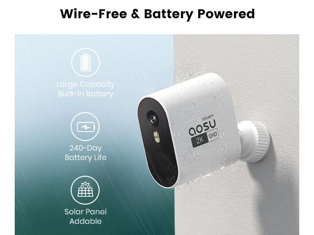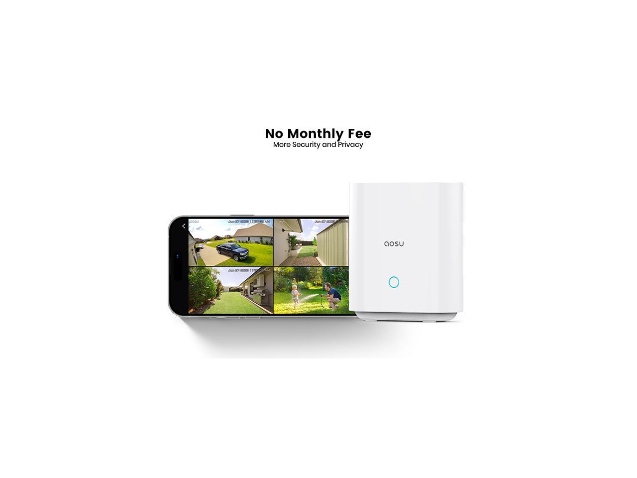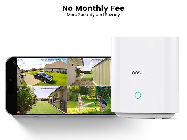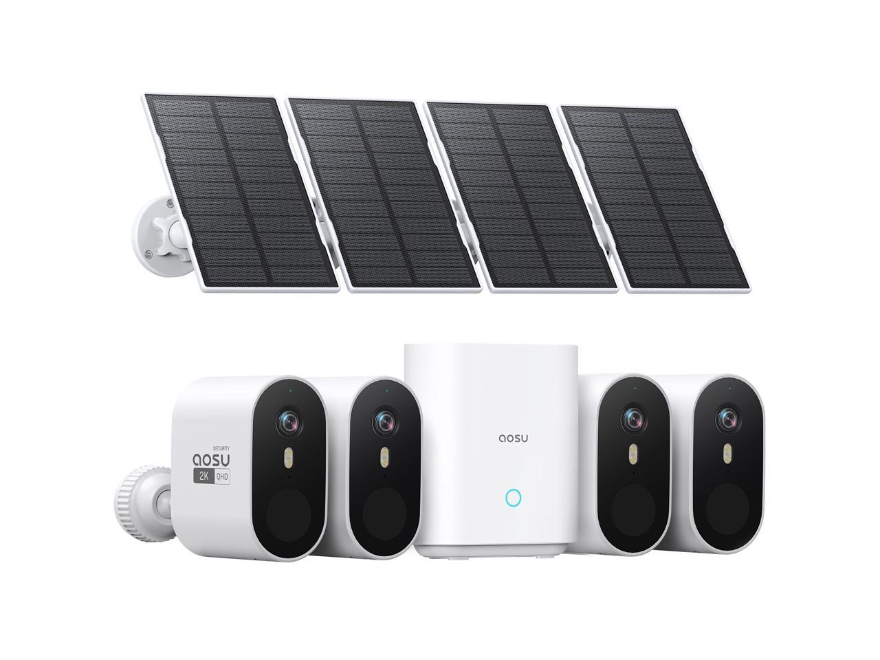 Aosu SolarCam System Pro 2K Outdoor Wi-Fi Night Vision 4-Camera Kit - Pan/Tilt/Zoom - Night Vision - Cloud Storage - 32GB local storage - Cover Every Corner - Smart Alerts (C7P-4H)