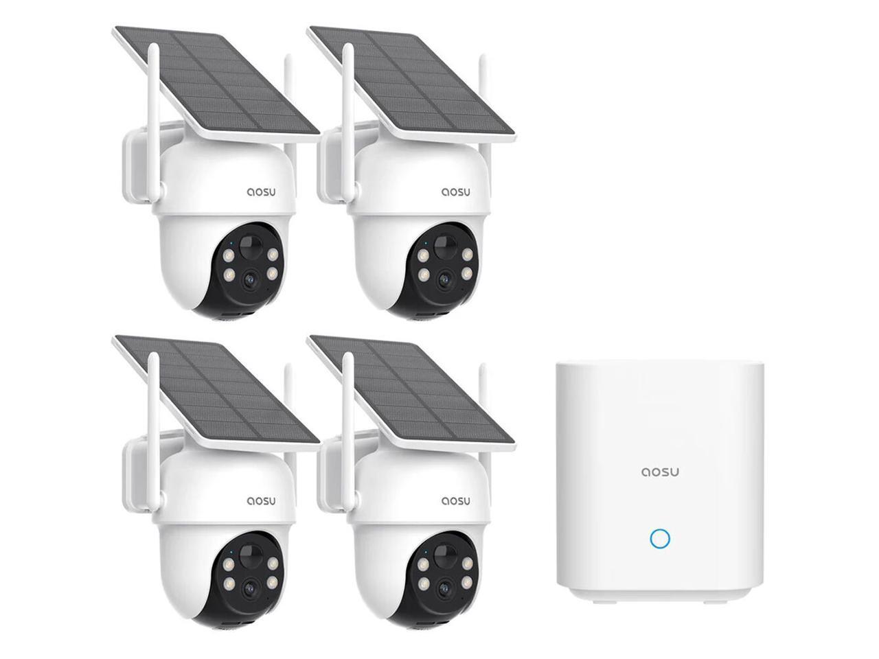 Aosu C9C-4H SolarCam D1 Classic 2K Outdoor PTZ Wi-Fi Turret Night Vision 4-Camera Kit - 170 degree Wide-Angle Lens, AI Detection, 2-Way Audio, and 128GB Local Storage