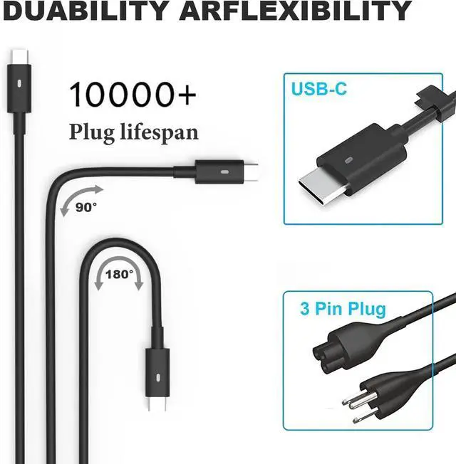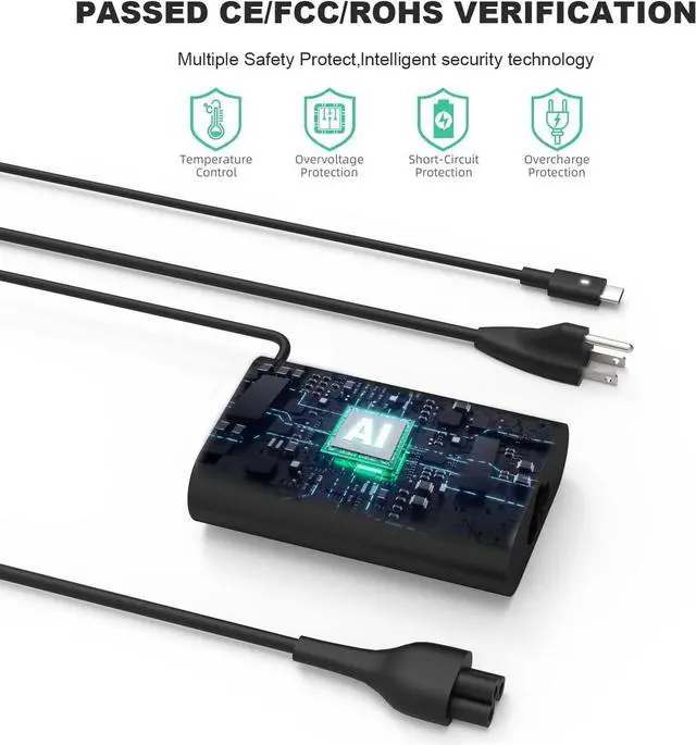 Input 100V 240V 50 60Hz 2.6A Max. Ouptut 5V 3A, 9V 3A, 12V 3A, 15V 3A, 20V 3.25A. Power 15w 27w 30W 45W 65W Tip size usb c Type c. Potencia 65 W compatible con 29 W, 30 W, 45 W, 61 W