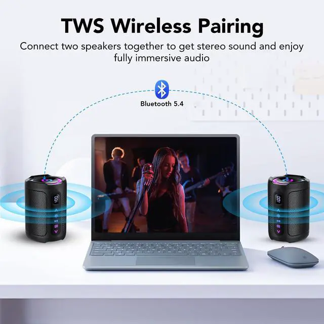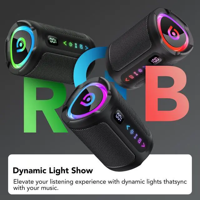 Bluetooth Speaker, 2026 Portable Wireless Speakers with Led Light, Bluetooth 5.4, 15H Playtime, Enhanced Bass, IPX7 Waterproof, Outdoor Speaker for Travel, Sport, Party, Biking.